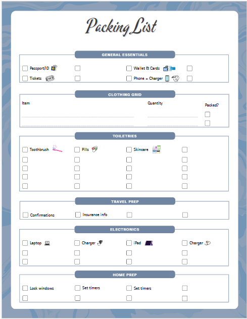✈️ Packing Lists & Home Prep
