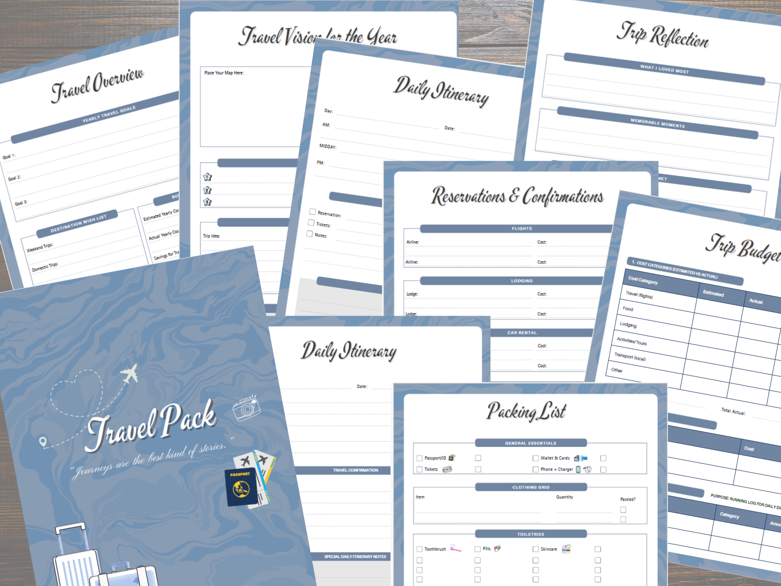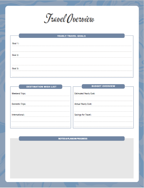 This Travel Pack includes guided planning, budgeting, and reflection pages such as: